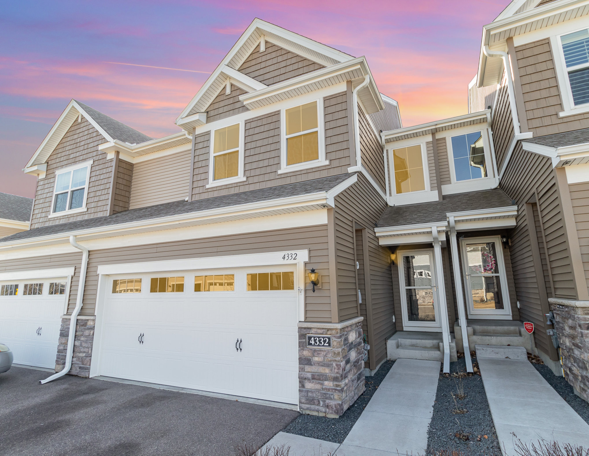 A wonderful south facing townhouse, the large windows provide a bright & warm main level. The cozy gas fireplace nicely warms the main level on cold winter days. The open design of the main level has a wonderful kitchen which features a convenient breakfast bar for quick meals & an informal dining room for dinners with family and friends. The south facing deck has stairs to the yard, very convenient for pets and kids. The upper level features a huge owners suite with an upgraded private bath and a big walk-in closet. There are 2 additional bedrooms on this level, perfect for a home office or craft room. The laundry is on the upper level too. The lower level is unfinished and provides room to grow and add equity. There is room for a family room, bedroom & future bath. The unit has plenty of storage throughout. The location of the home is ideal, walk to the grocery store or the Bielenberg sports complex, easy access to 494 and Hwy 61. There are plenty of walking/biking paths nearby too.  Contact Rob Brown for more information at 612-867-8481